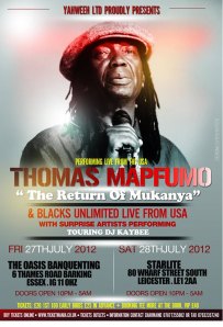 So what’s on this weekend? I am going to the Mukanya’s show, it has been all of 20 years since I last seen the Mukanya live in concert. If you are in England I would recommend the show as well because judging by his